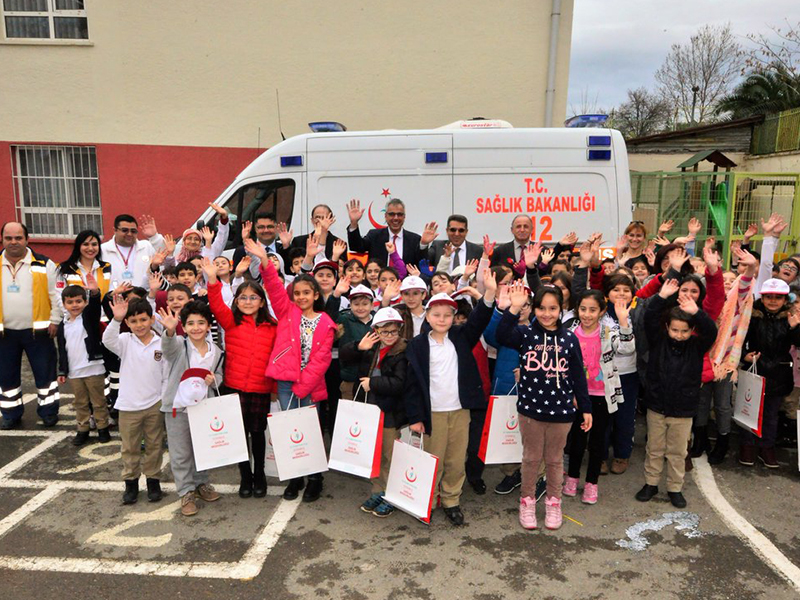 ‘Minik 112 projesi’ olarak adlandırılan projede, 2016 yılında 60’ın üzerinde kreş, anaokulu, ilkokul ve ortaokulda yaklaşık 60 bin öğrenciye ulaşıldı. Tophane İlkokulu öğrencileri de sınıflarda ve ambulans içinde ekipler tarafından bilgilendirildi. 2017 yılında 50 bin öğrenciye eğitim verilmesi hedefleniyor.